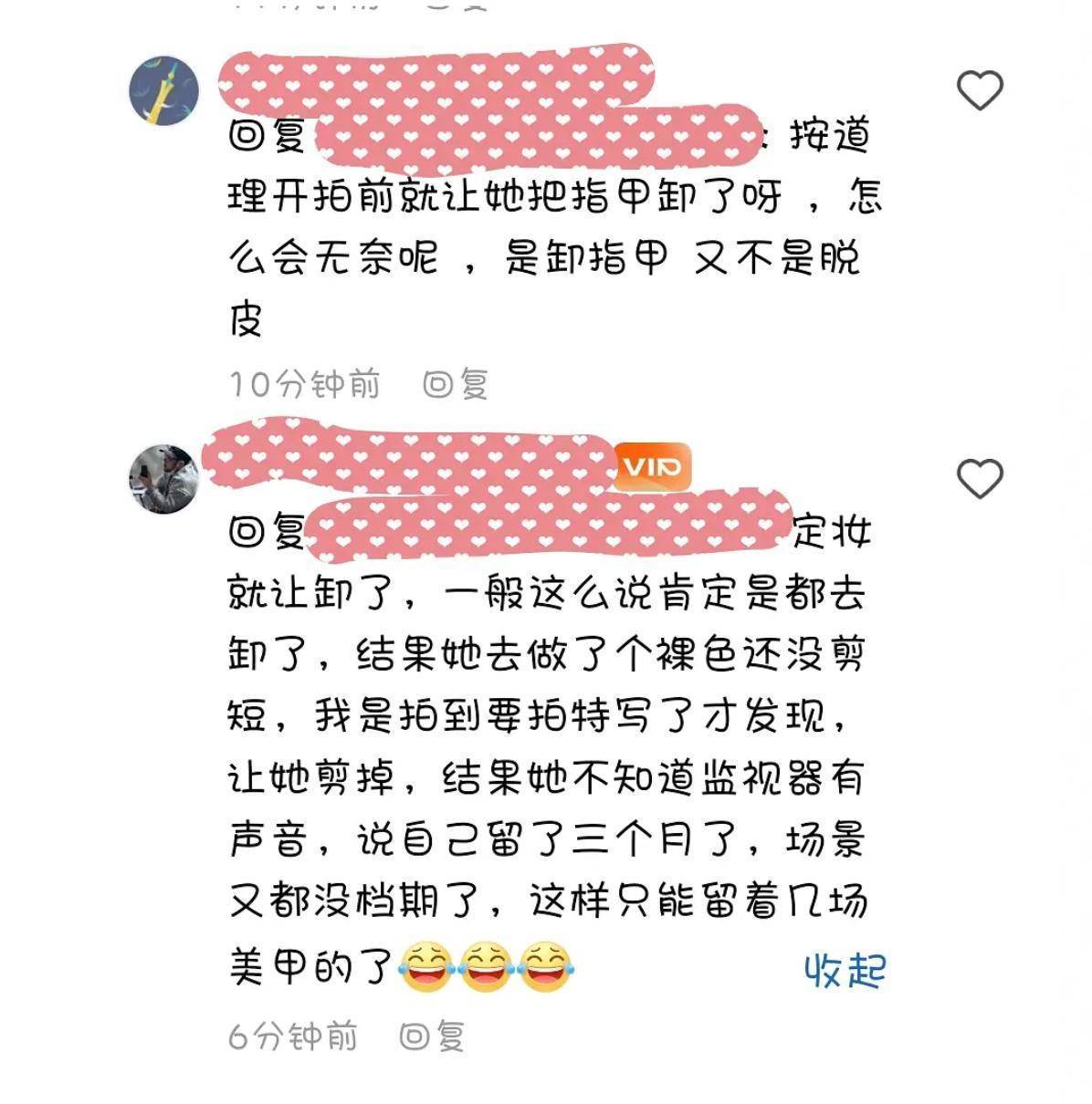 网友不能理解导演的无奈,觉得他应该开拍前就让女演员把美甲卸掉,只是卸个美甲,又不是脱层皮。