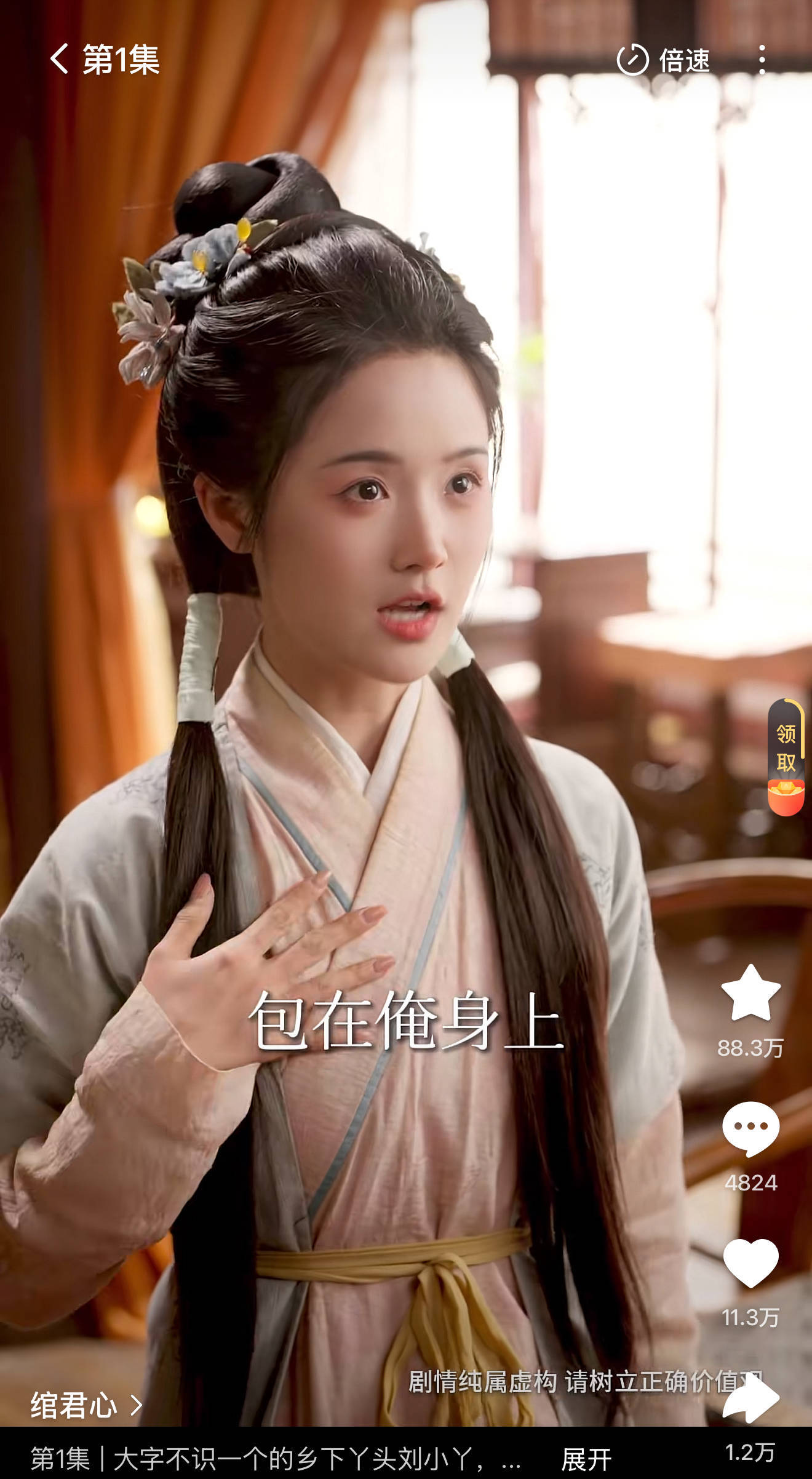胖女主一共演了十三集,衣服为了契合“农女”人设是很质朴的粗布麻衣,头发绑带用布条,耳环、发饰几乎没有,打造的是贫苦农女形象。