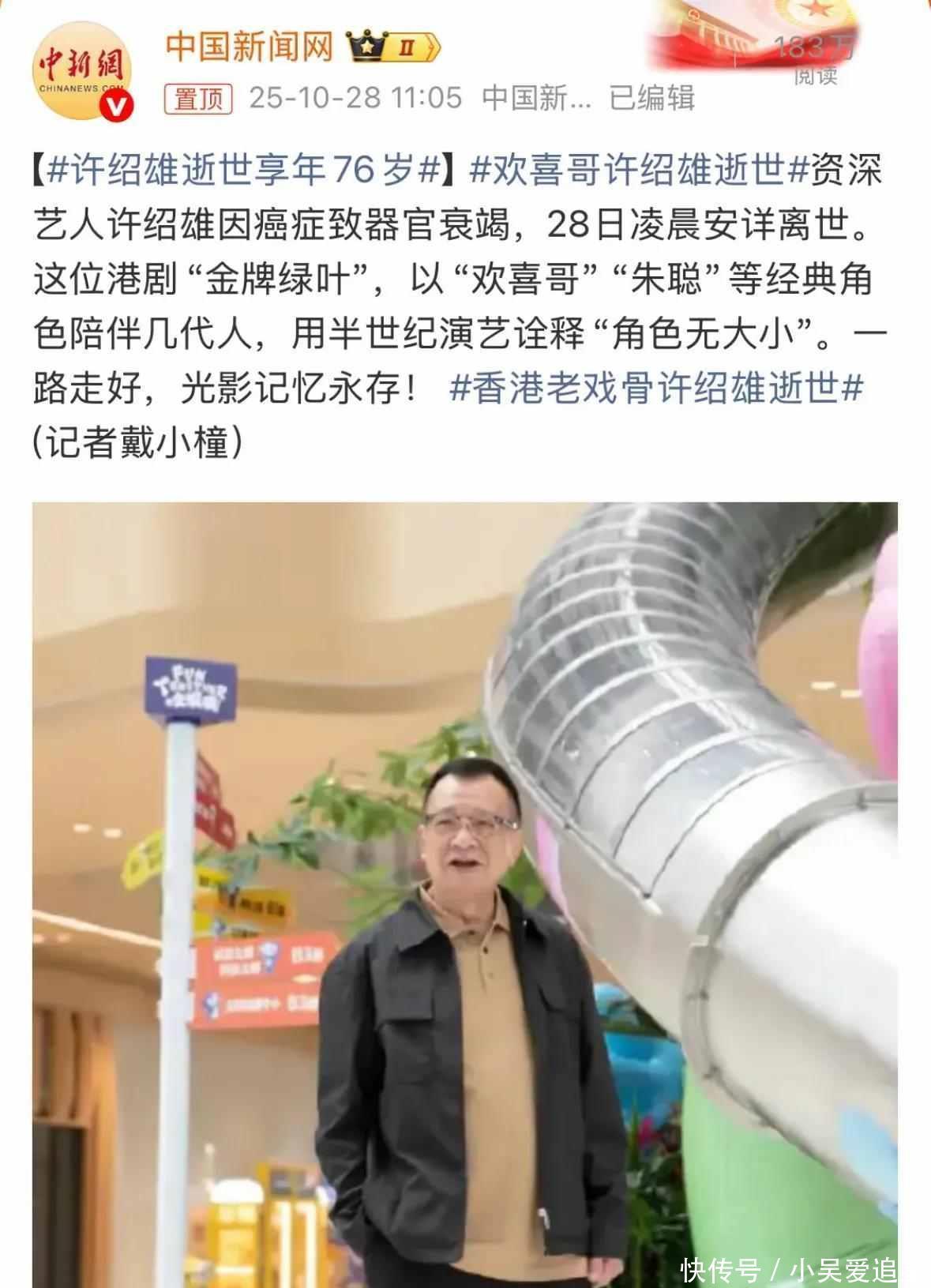 许绍雄���日凌晨走了,七十六岁,再过七天就是他生日,他最后一条视频��日发的,讲的是努力的意义,视频里他说话很稳,脸上看不出病样,谁也没想到那会是他最后一次露面。